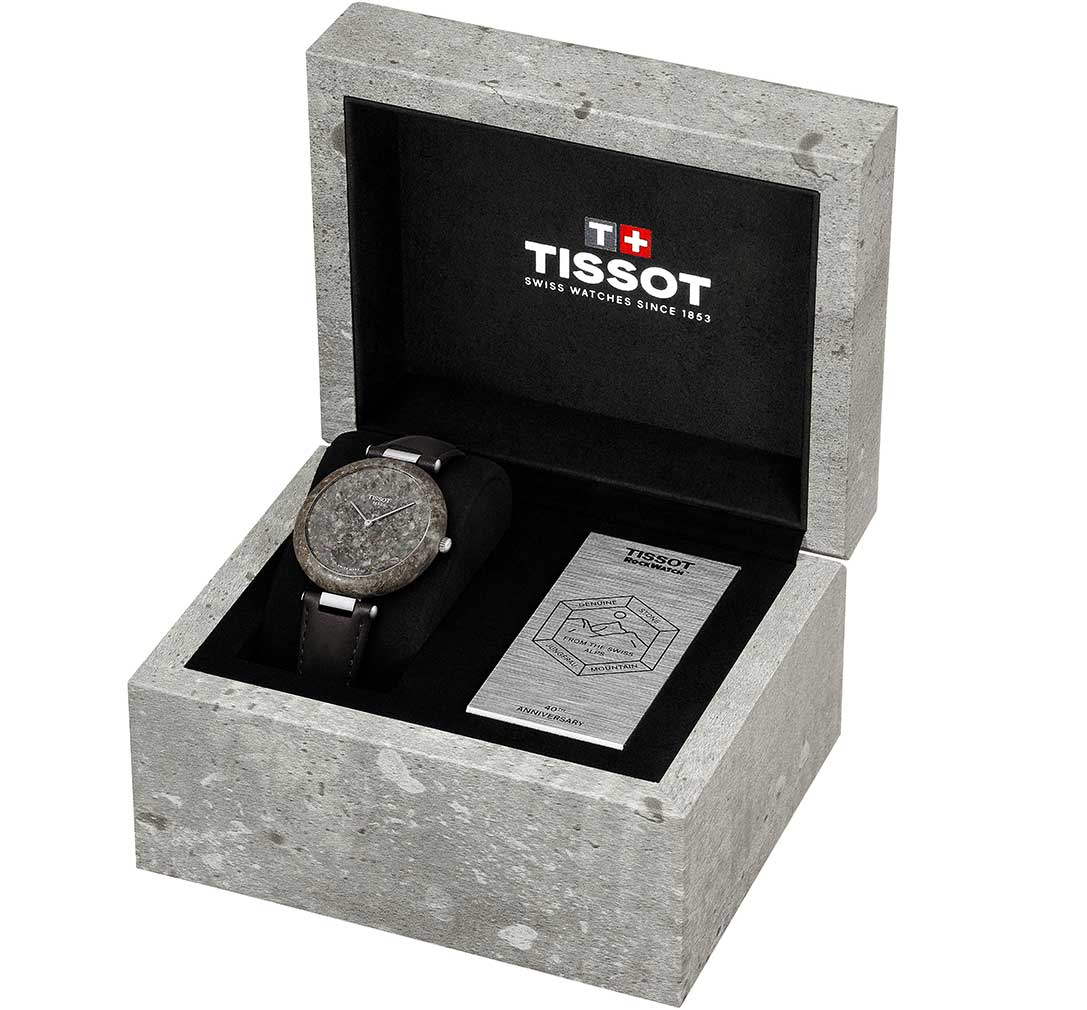 اکنون، پس از گذشت چهل سال، تیسوت برای ادای احترام به این اثر بیهمتا و جسورانه، آن را با نگاهی مدرن بازآفرینی کرده است. بلوک گرانیتی که طی قرنها زیر دست زمان تراش خورده، این بار به بدنهای با قطر ۳۸ میلیمتر تبدیل شده است و در کنار بند چرمی ظریف، جلوهای اصیل و طبیعی یافته است. این بند به زایدههایی متصل میشود که قاب پشتی فولادی و پیچیشکل ساعت را در آغوش گرفتهاند. در پشت ساعت، حکاکیهایی ظریف دیده میشود که به منشأ سنگ آلپی، ارتفاع کوه یونگفراو (۴٬۱۵۸ متر) و شمارهی اختصاصی هر مدل اشاره دارند.