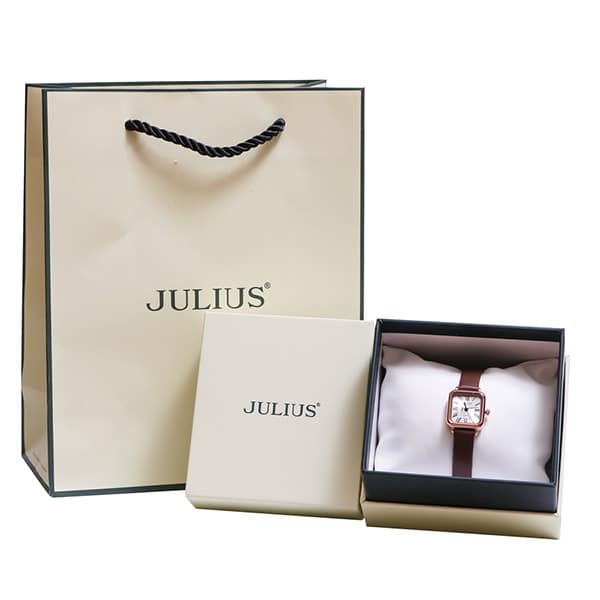 ساعت مچی زنانه جولیوس JA-1414Cساعت عقربه ای زنانه جولیوس با طراحی زیبا و شیک، انتخابی عالی برای استفاده روزمره است. این ساعت دارای بدنه از جنس استیل با رنگ رزگلد و بند از چرم مصنوعی با رنگ قهوه ای می باشد. صفحه آن با رنگ نقرهای و فرم چهارگوش زیبا و جذاب است.