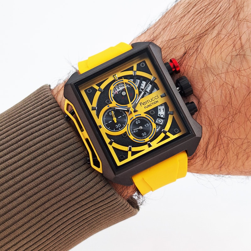 ترکیب رنگی بکار برده شده در این ساعت رنگ زرد و مشکی است.