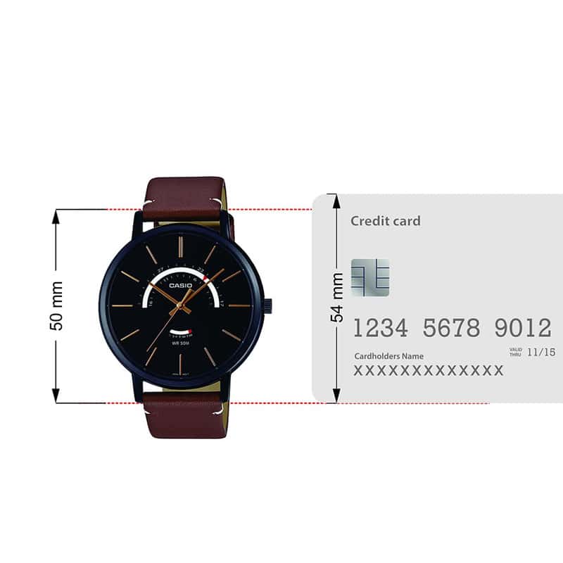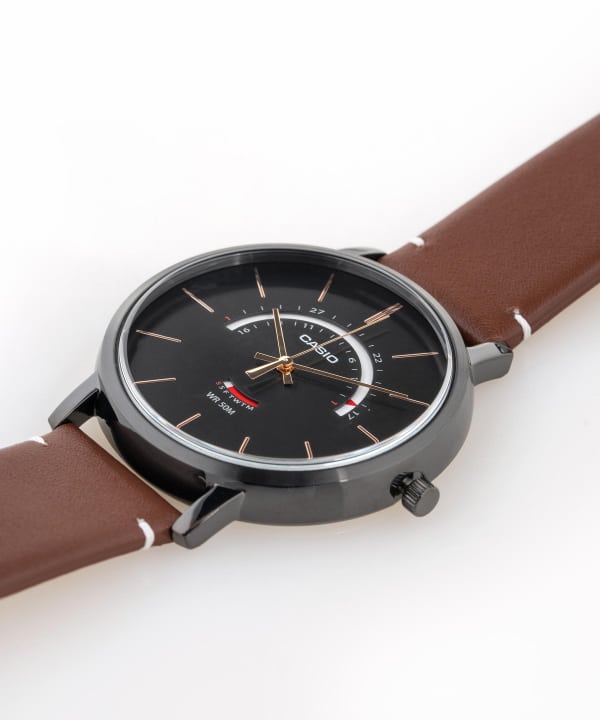 این مدل یک از جدیدترین ساعت ها به مجموعه مدل های مینیمالیستی آنالوگ استاندارد محبوب کاسیو است. یک صفحه ی ساده و تمیز با یک پنجره تاریخ شکافی که از ساعت 3 تا 9 بعد از ظهر است، و یک پنجره روز شکافی که از ساعت 5 تا 7 است، جبران می شود.
