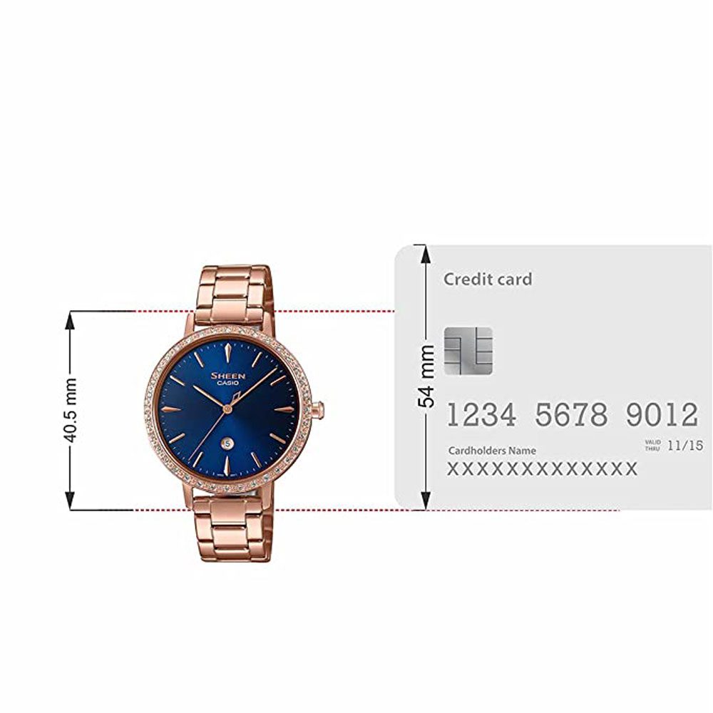 نام Sheen به معنای درخشندگی است؛ کاسیو در راستای تولید ساعتهای درخشان، از کریستالهای لوکس سواروسکی و سنگهای درخشنده، استفاده کرده است تا همراهی همیشگی برای دختران و زنان باشد.