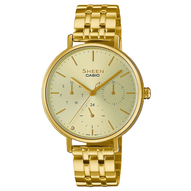 سری شین (SHEEN) برند کاسیو، لاین مخصوص تولید ساعتهای ظریف زنانه با طراحیهای مدرن برای استفاده روزمره و نیمهرسمی است. نام Sheen به معنای درخشندگی است؛ کاسیو در راستای تولید ساعتهای درخشان، از کریستالهای لوکس سواروسکی و سنگهای درخشنده، استفاده کرده است تا همراهی همیشگی برای دختران و زنان باشد.