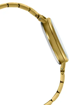 این ساعت ساده، با ظاهر کلاسیک عقربههای ساعت، دقیقه و ثانیه، درخشندگی بیشتری را از روکش آینهای درخشان بند و قاب بهدست میآورد.