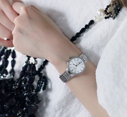 بند استیل نقرهای با صفحه مدرج روشن، بند استیل مشکی با صفحه مدرج تیره، یا بند چرمی خاکستری که با قابی طلایی تزئین شده تا ظاهری باشکوهتر داشته باشد. فرقی نمیکند که برنامه شما چیست، یکی از این ساعتهای ساده، که پیرایهای عالی است، با افتخار در جعبه جواهرات شما جای میگیرد.